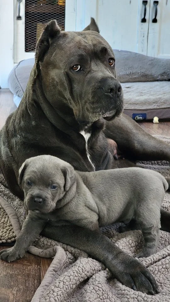 I was first drawn to the Cane Corso because of their effortless movement and began researching the breed in 2015. My first prospect female was born at the end of 2016. I quickly realized after getting her at 5 months old that she was going to be a lot more work because her breeder did nothing to socialize her. The next 6 months were spent building confidence and getting her out into the world, but the more research I did pointed to the first 16 weeks of a puppies life being critical for their future development. In the end, I decided she did not have a temperament I would want to breed and pass on to future families so she was spayed. That female is Heidi and she lives a very spoiled life as my pet.